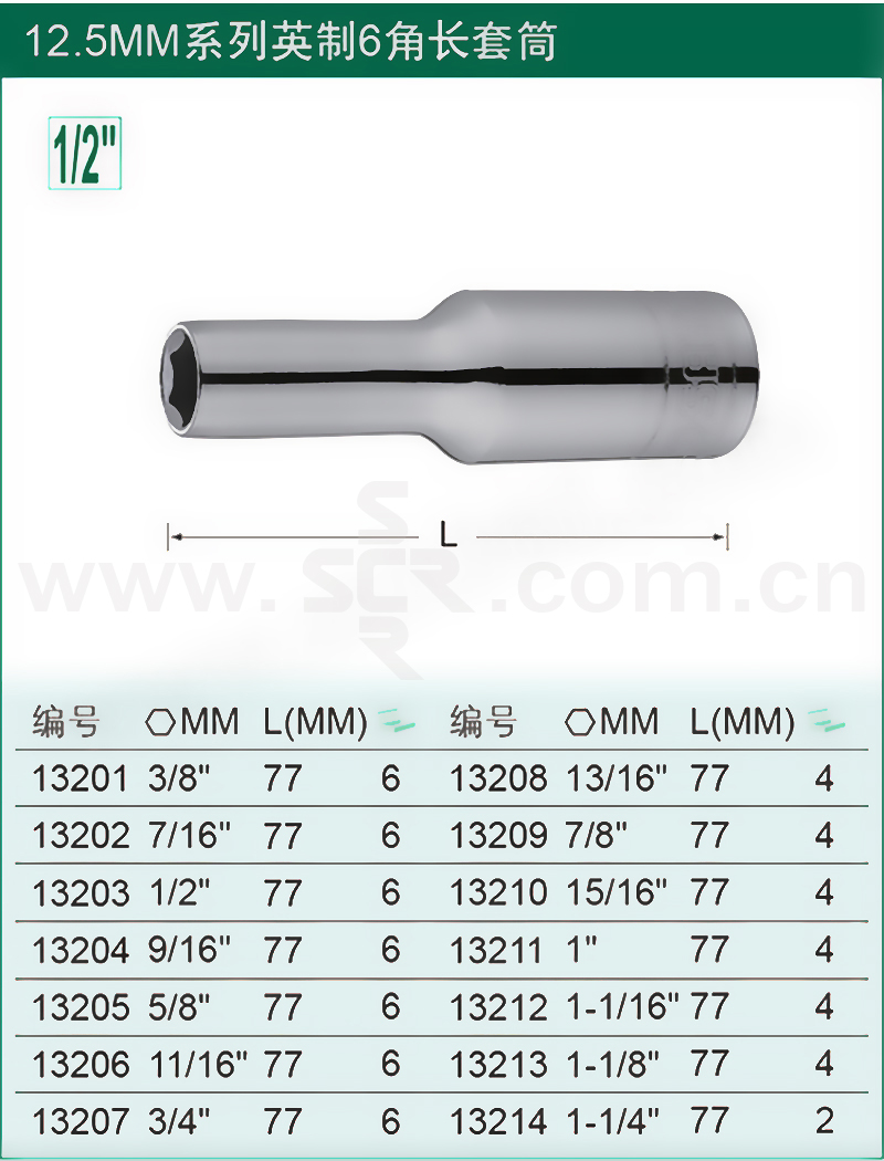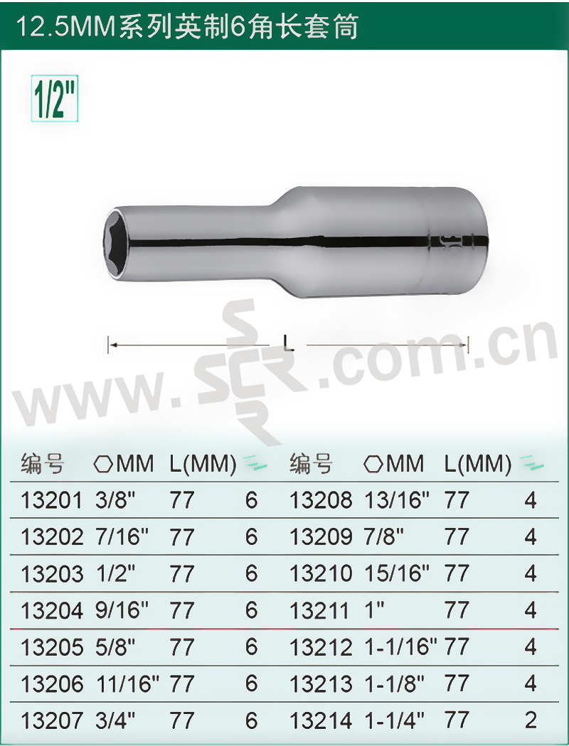 12.5MM系列英制加长六角套筒