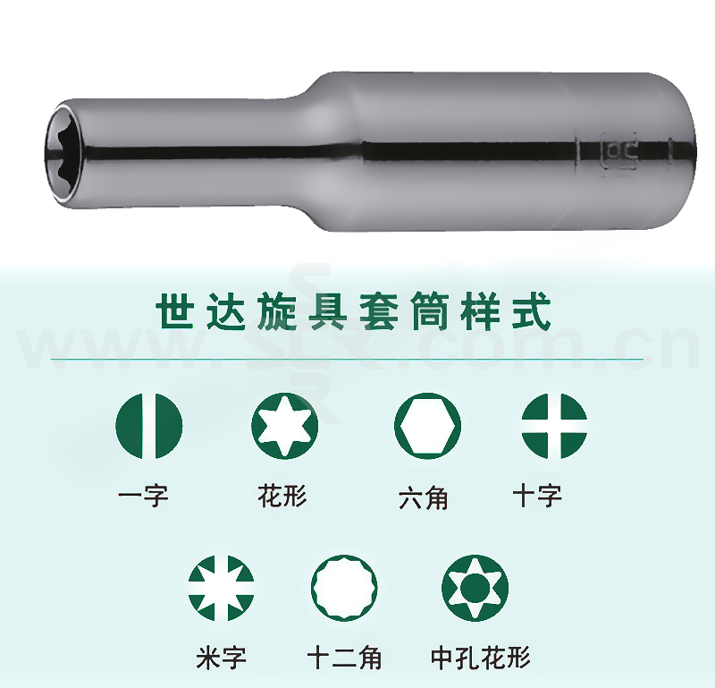 ·由于使用特殊工艺及铬钒钢,世达专业套筒具有轻薄强力的功能,使用户在狭小空间中方便使用且比一般厚的套筒扭矩更强。