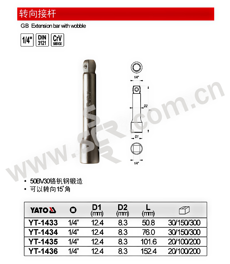 YATO/易尔拓 1/4"转向接杆 YT-1433 1/4"×50.8mm 1支