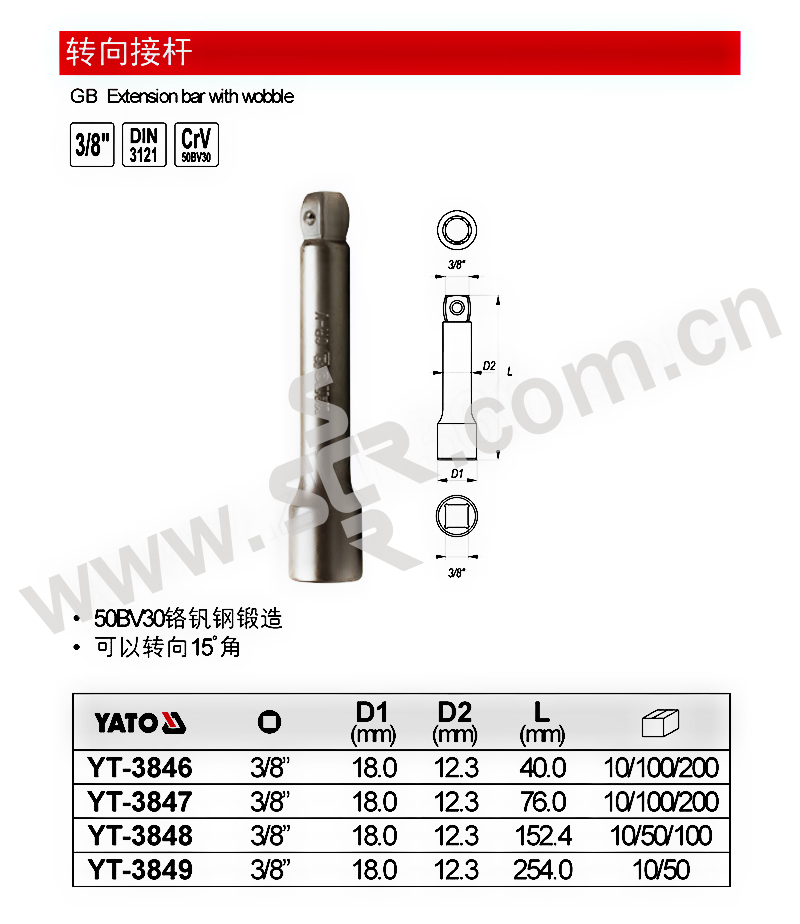 YATO/易尔拓 3/8"转向接杆 YT-3846 3/8"×40mm 1支