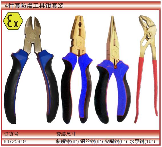 4件套防爆钳工组斜嘴钳,钢丝钳,尖嘴钳,水泵钳