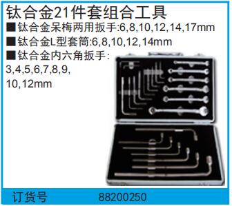 F21737 88200250 21件 金属 21件/箱 钛合金呆梅两用扳手:6,8,10,12,14,17mm 钛合金L型套筒:6,8,10,12,14mm 钛合金内六角扳手: 3,4,5,6,7,8,9, 10,12mm 17mm 17854.06