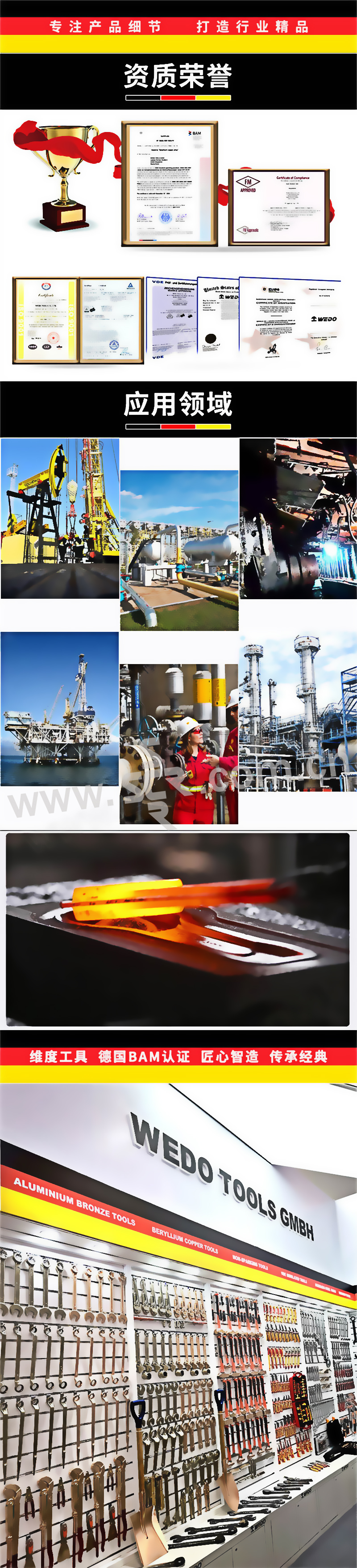 ·维度防爆工具——稀有贵重金属精锻而成的无火花安全工具,在易燃易爆环境中,能够有效防止工具与工作物相互摩擦、撞击产生的可燃性爆炸,确保国家财产和人身安全。