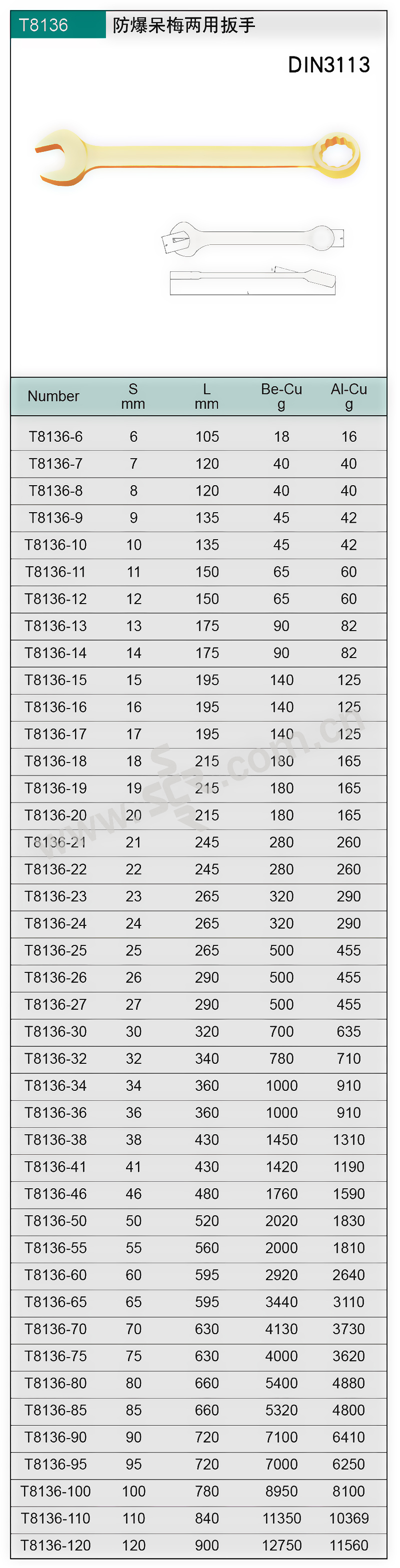 CNFB/桥防 135系列铍青铜防爆呆梅两用扳手 T8135-46-BE 1把