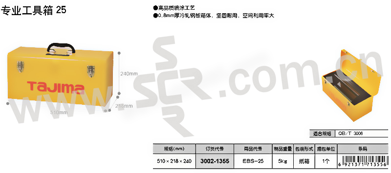 TAJIMA/田岛 专业工具箱25 3002-1355 510×218×240mm 黄色 1只