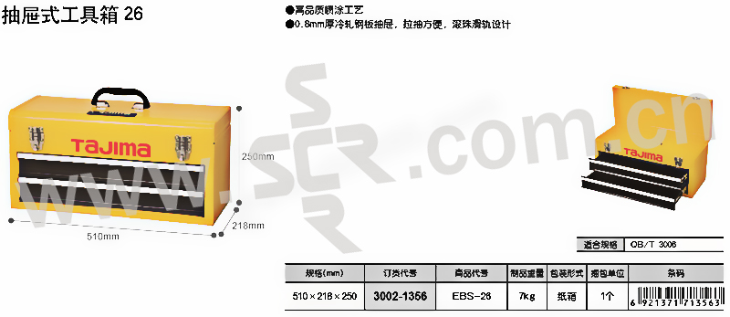 TAJIMA/田岛 抽屉式工具箱26 3002-1356 510×218×250mm 黄黑色 2抽屉 1只