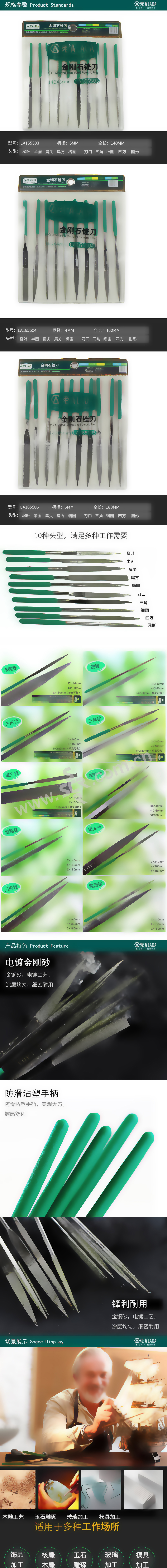 LAOA/老A 金刚石整形锉组套 LA165503 3×140mm 10件 1套