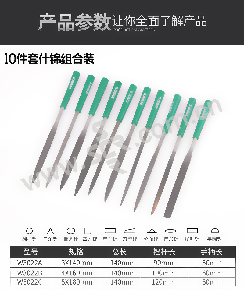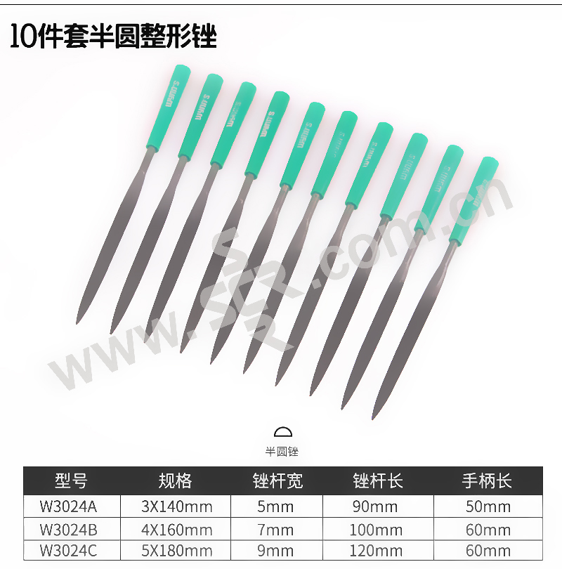 WYNNS/威力狮 10件套半圆形什锦锉 W3024A 3×140mm 1套
