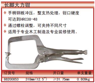·手柄钢板冲压,整支热处理,钳口硬度可达到HRC38-48 ·通过螺栓调整,可夹持不同尺寸