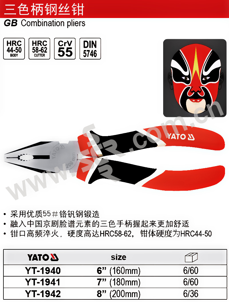 YATO/易尔拓 三色柄钢丝钳 YT-1940 6" 1把