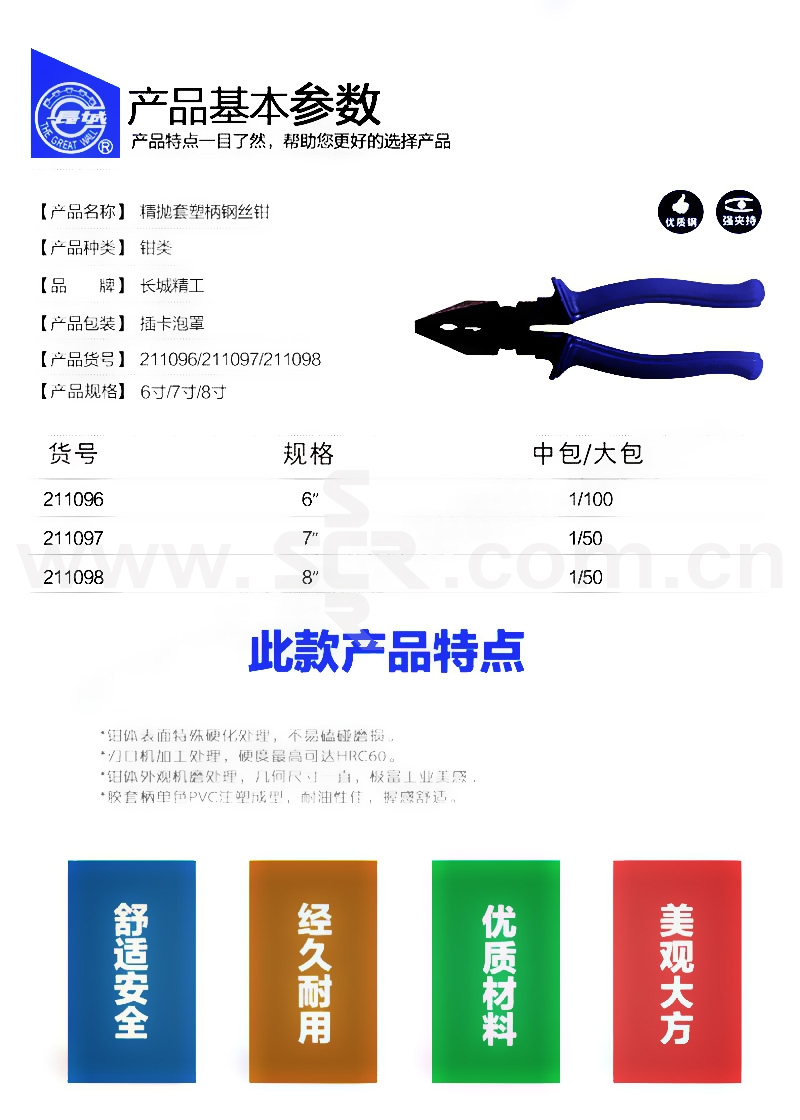 GREATWALL/长城精工 精抛套塑柄钢丝钳 211096 1把