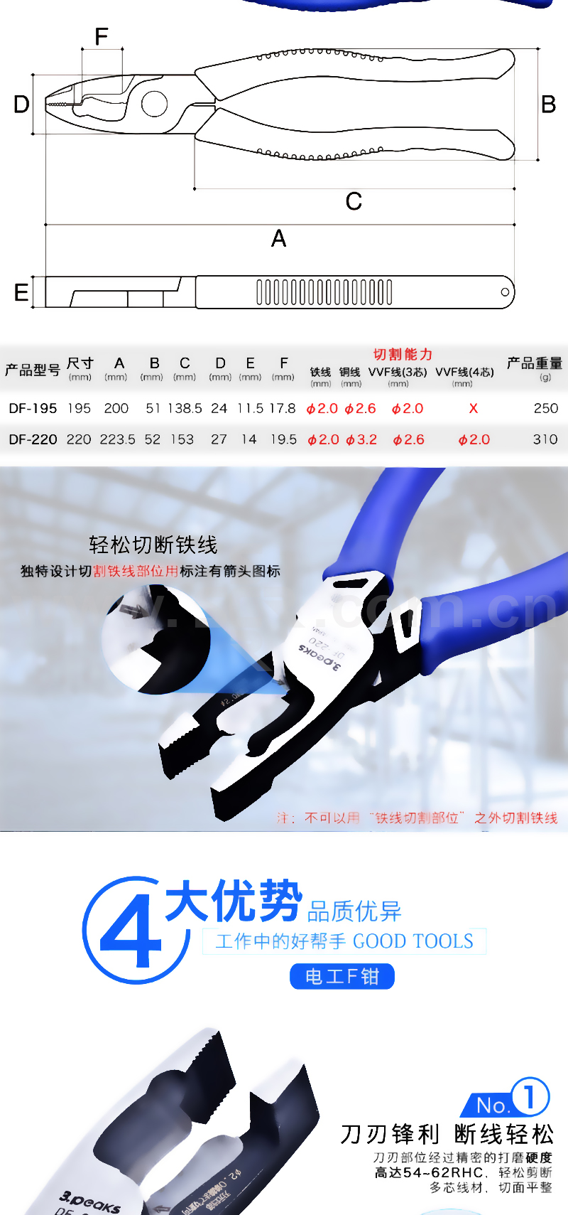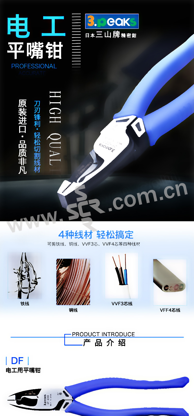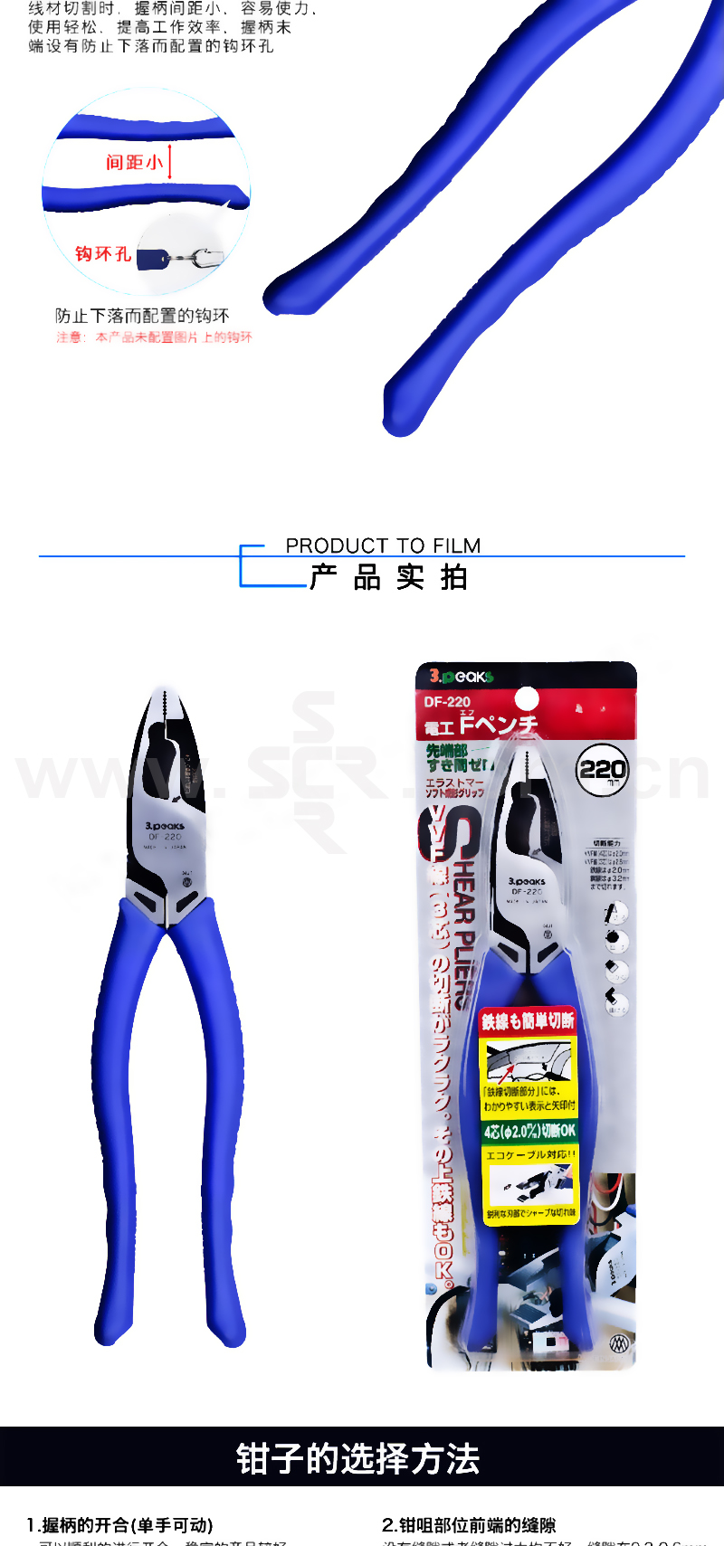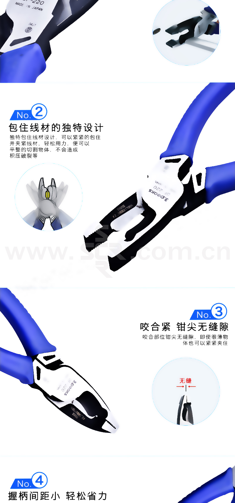 3PEAKS/三山 进口轻型电工老虎钳 DF-220 9" 220mm 1把