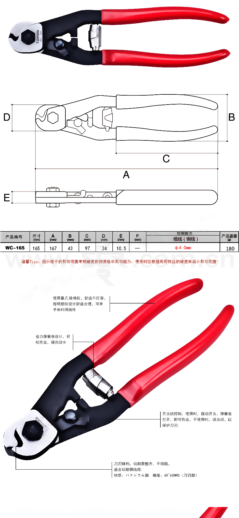 ·合成树脂塑料手柄,增加防滑点,握持不打滑
