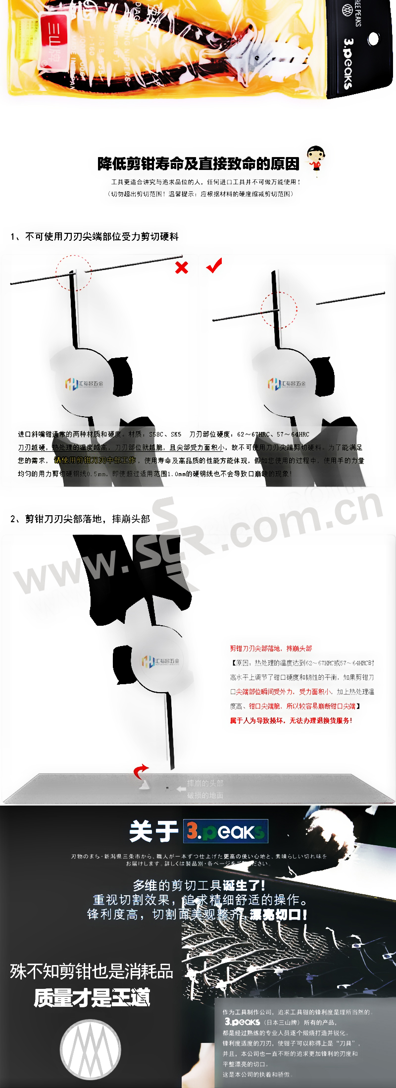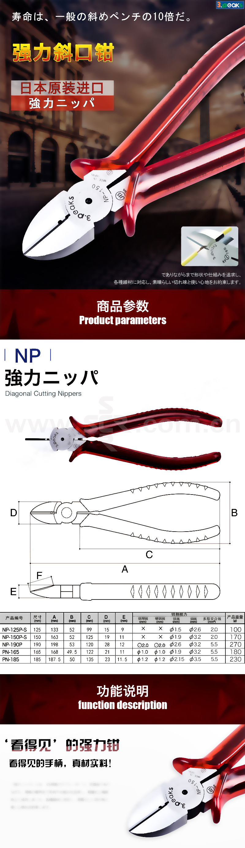 3PEAKS/三山 进口钢丝钳(笔直型) NP-190P 190mm 1把