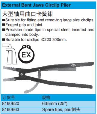 大型轴用曲口卡簧钳 08160620 635mm 1把