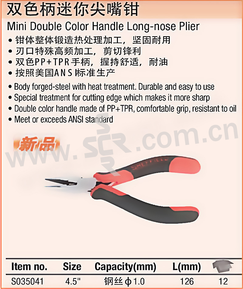 SHEFFIELD/钢盾 双色柄迷你尖嘴钳 S035041 4.5" 1把