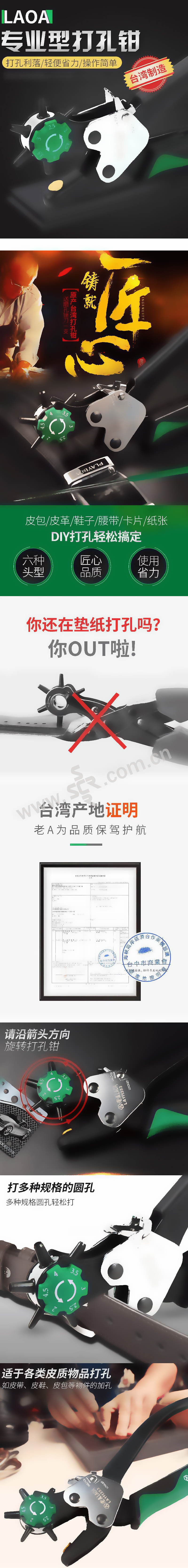 ·钳头细磨锋利打孔迅速,双色包胶手柄手感舒适