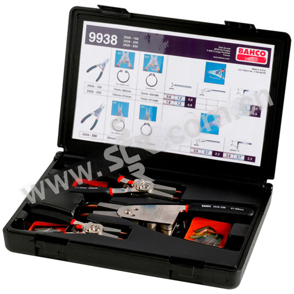 ·卡簧钳套装:包含了2928所有的3个型号。·2928系列:可换头的卡簧钳,用途覆盖了现今所有的卡簧钳类别。·可替换的卡簧头能够按需要使用合适的配件。·-160和-200有5组可替换钳头,-250有6组。·作为内卡簧时,使用范围为8-100mm。·作为外卡簧时,使用范围为3-100mm。