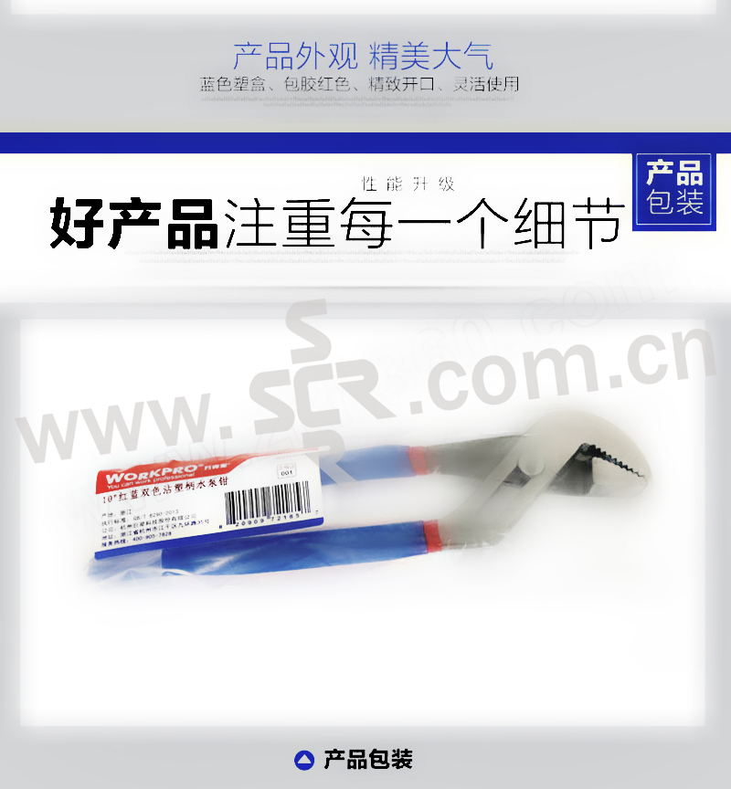 WORKPRO/万克宝 10"红蓝双色沾塑柄水泵钳 W031034WE.GD 10" 1个