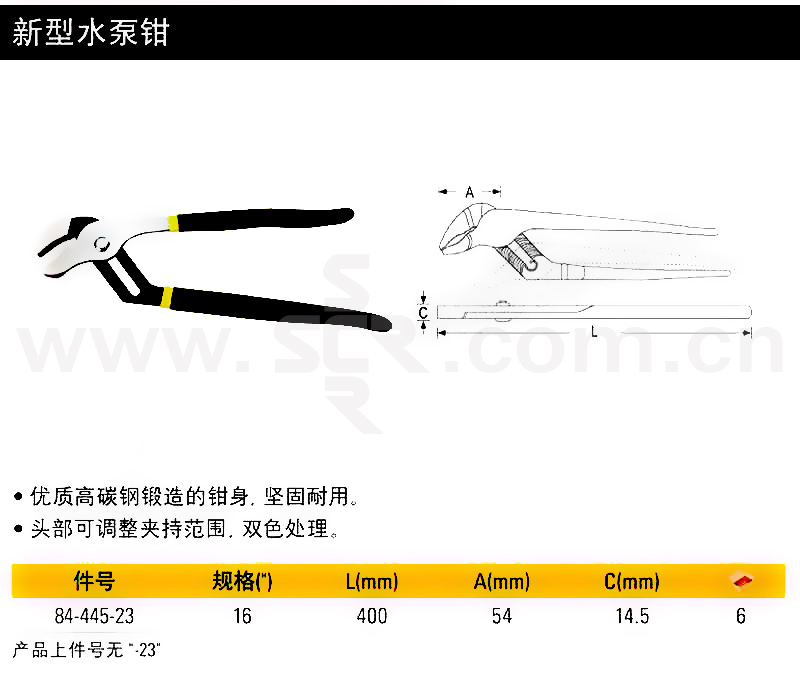 ·优质高碳钢锻造的钳身,坚固耐用