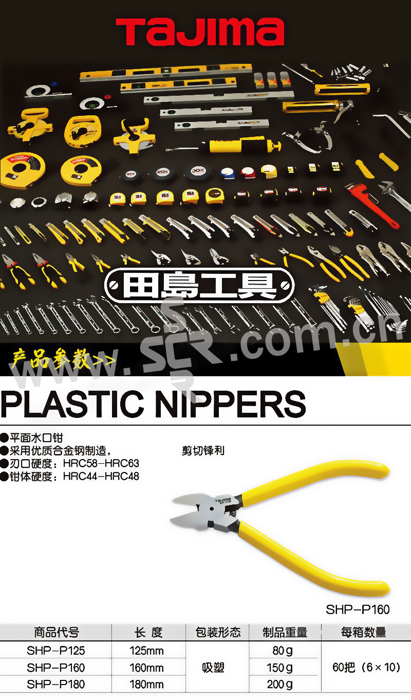 TAJIMA/田岛 平面水口钳 1204-0519 6"/160mm 黄色沾塑柄 1把