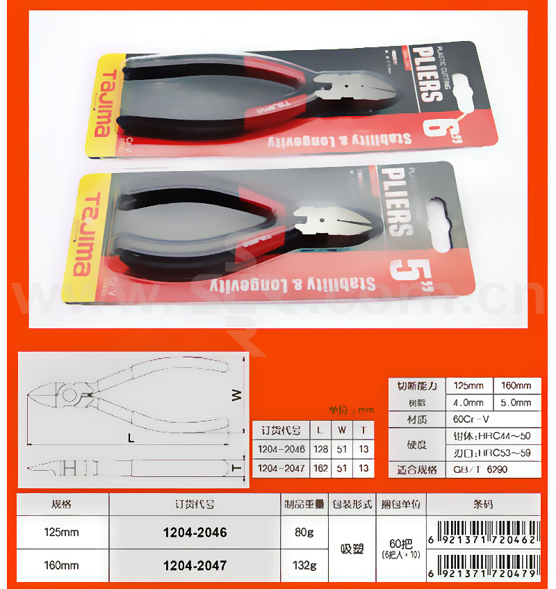 TAJIMA/田岛 超级平面水口钳 1204-2047 160mm 1把