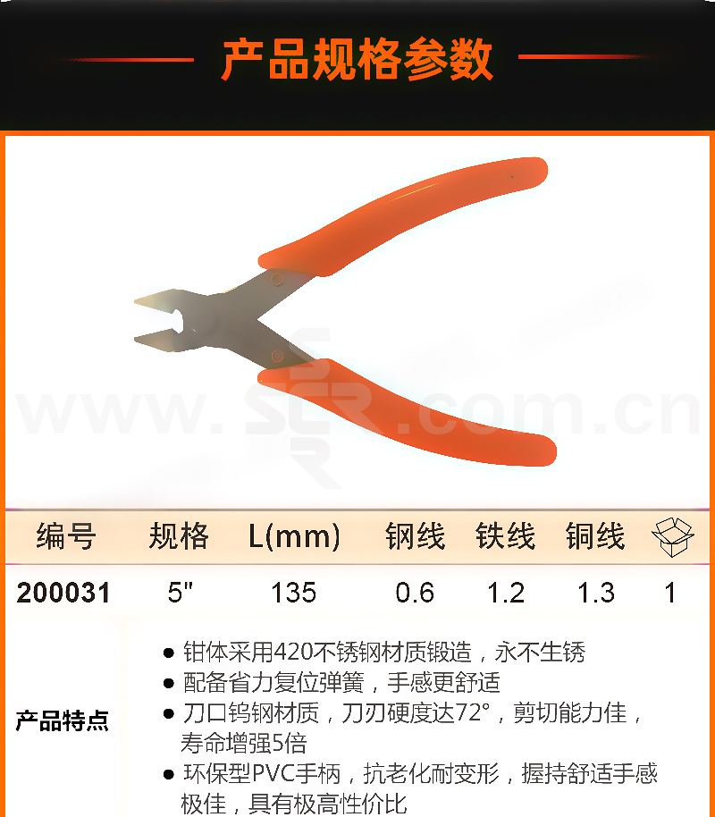 EVERPOWER/艾威博尔 钨钢系列电子剪钳 200031 5" 135mm 平头 1把