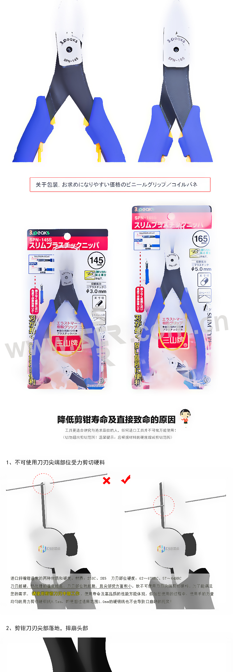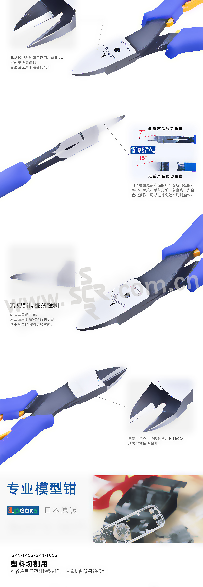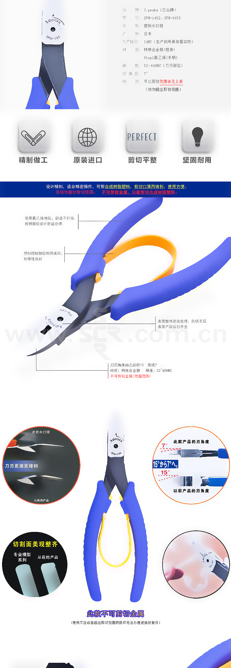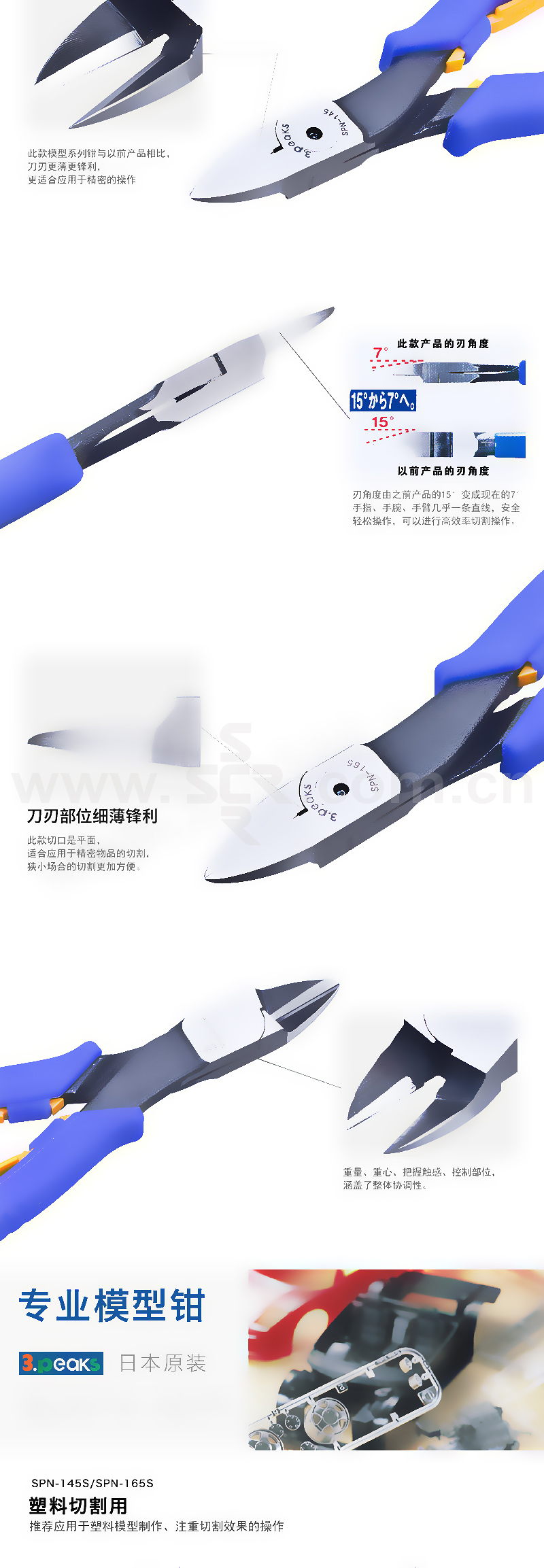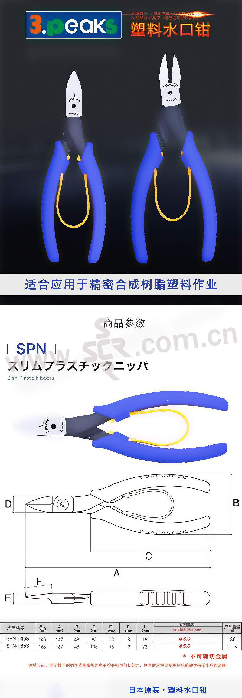 3PEAKS/三山 进口超薄刃高精密水口钳 SPN-165S 165mm 1把
