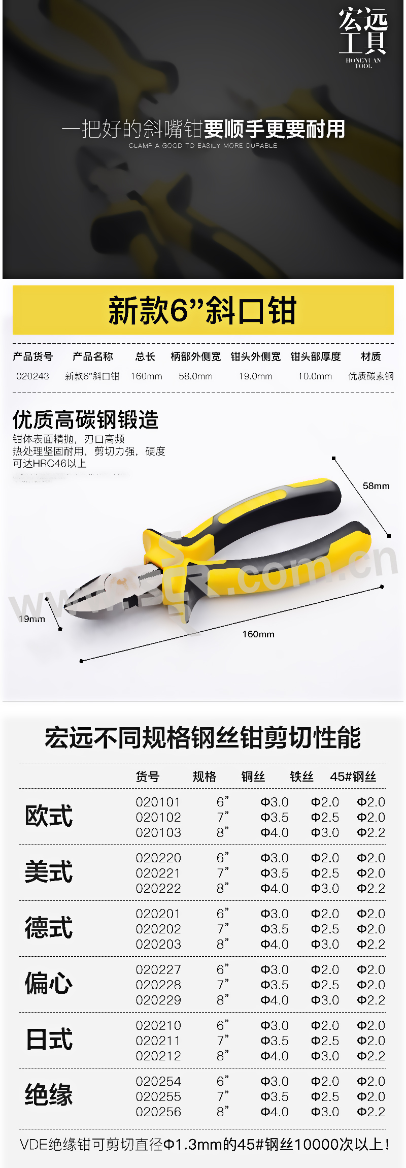 HOLD/宏远 新款6"欧式斜口钳 HY-GC306 1把