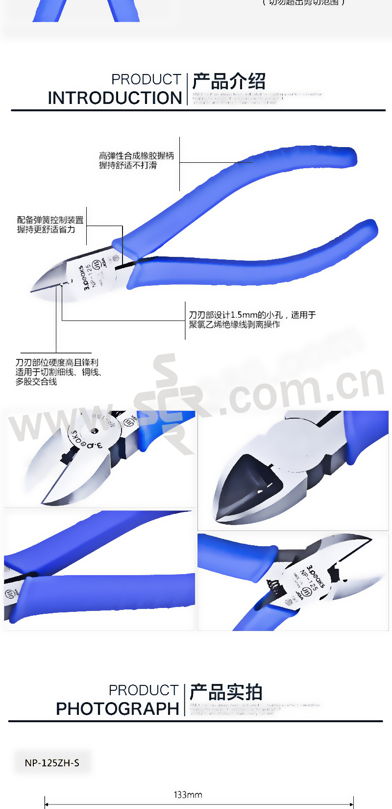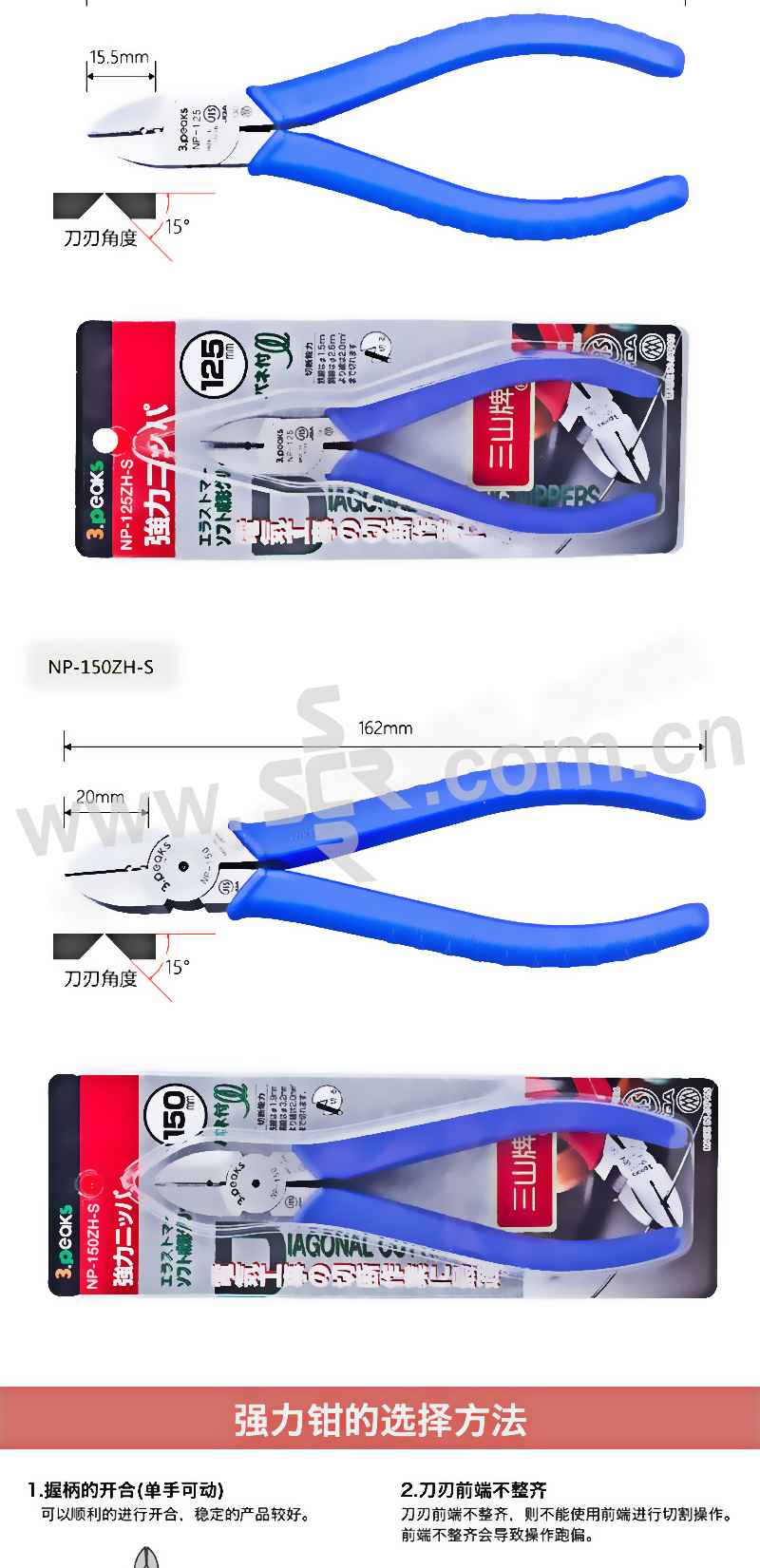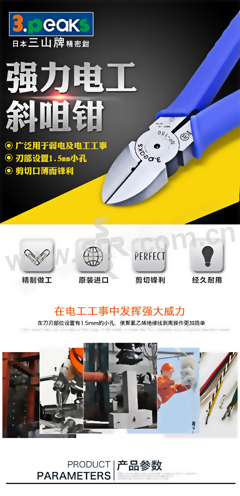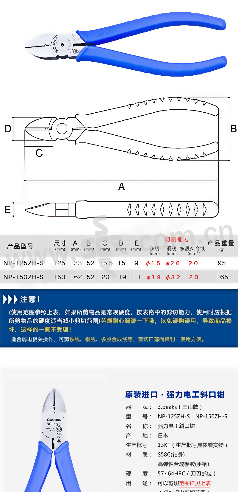 3PEAKS/三山 进口电工轻便型剥线斜嘴钳 NP-125ZH-S 5" 125mm 1把