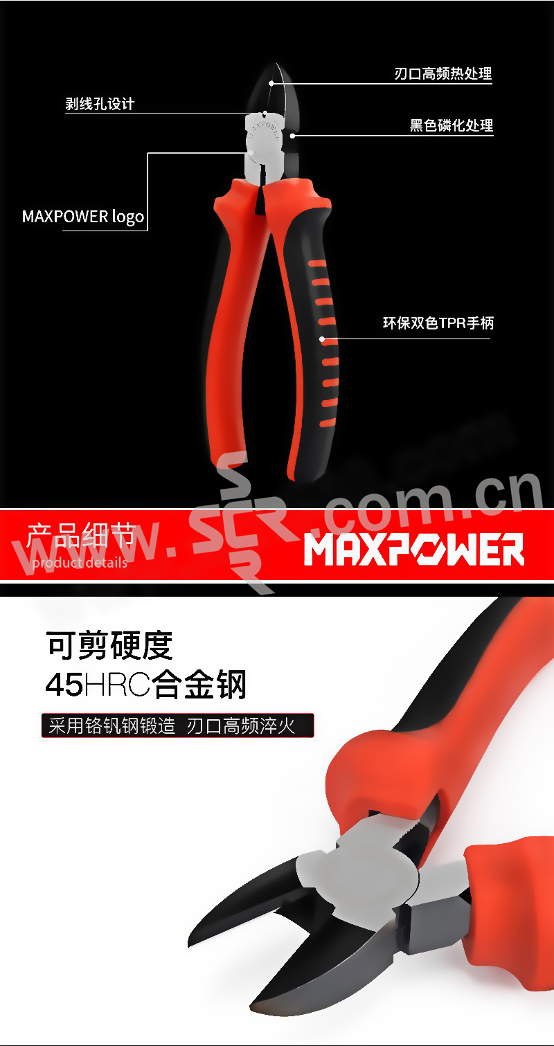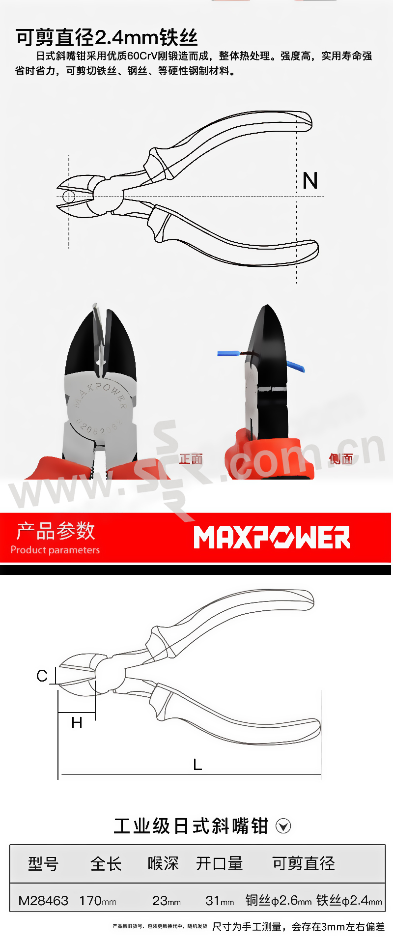 MAXPOWER/力钰 工业级日式斜嘴钳 28463 160mm 1把