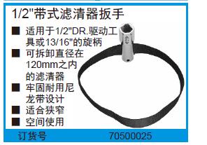 ·适用于1/2"DR.驱动工具或13/16"的旋柄可拆卸直径在120mm之内的滤清器牢固耐用尼龙带设计适合狭窄,空间使用