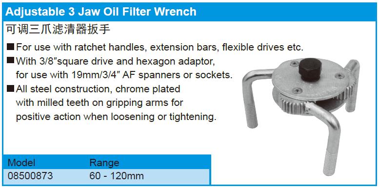 Adjustable 3 Jaw Oil Filter Wre