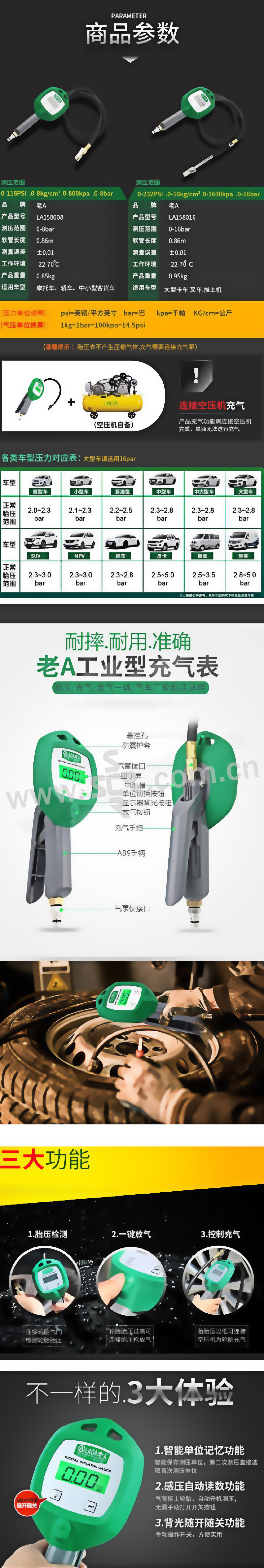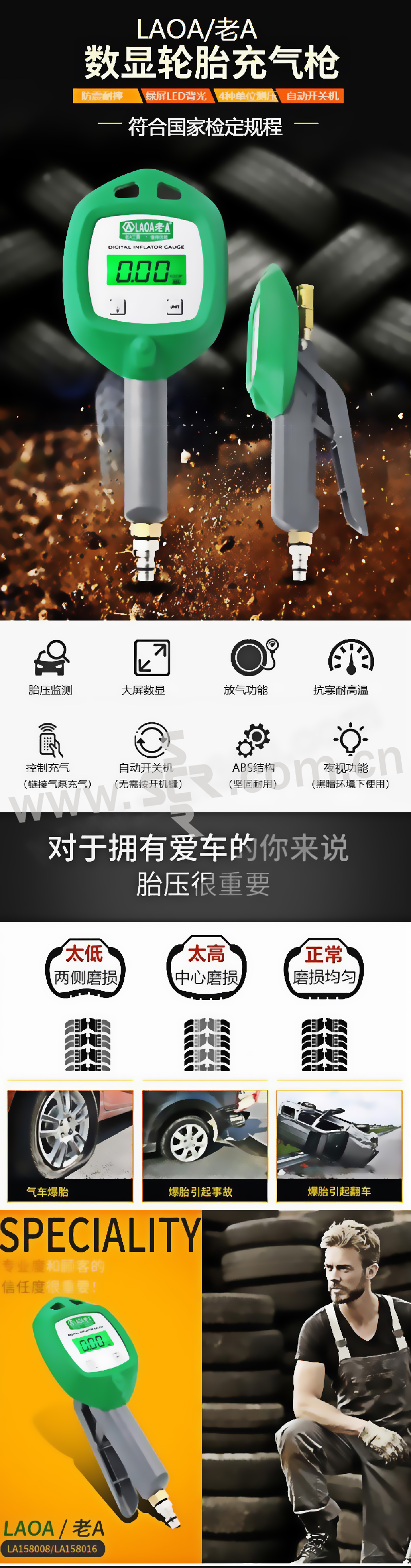 LAOA/老A 数显轮胎压力表 LA158008 0~8bar 1个