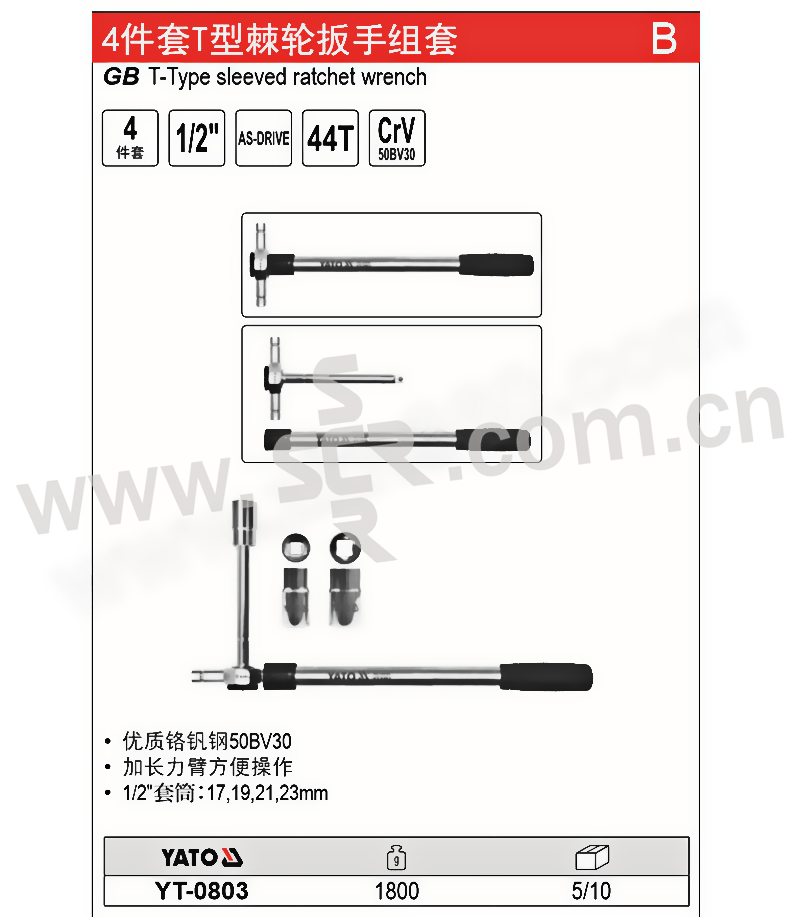 YATO/易尔拓 T型棘轮扳手组套 YT-0803 4件 1套