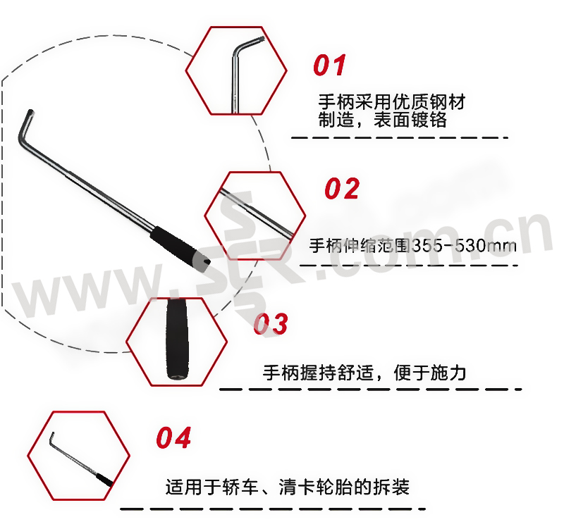 ·适用于轿车、清卡轮胎的拆装。