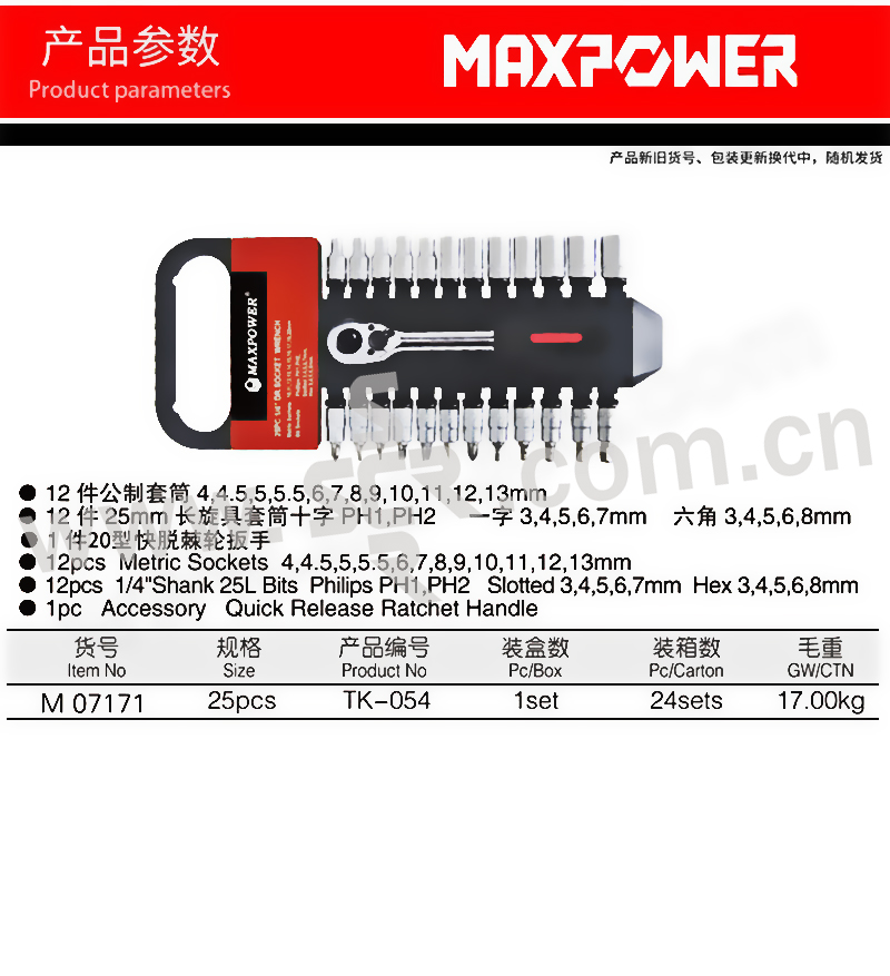 MAXPOWER/力钰 25件6.3mm套筒组套 M07171 6.3mm 1套