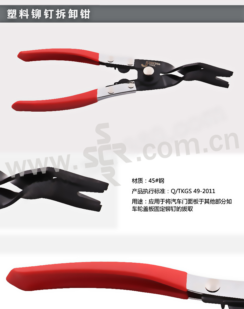 ·用途:应用于将汽车门面板与其他部分如车轮盖板固定铆钉的拔取