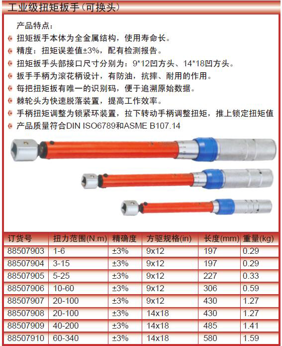 A12271 88507909 40-200N.m ±3% 9*12凹方头/14*18凹方头 485mm 1.41kg 1935.00
