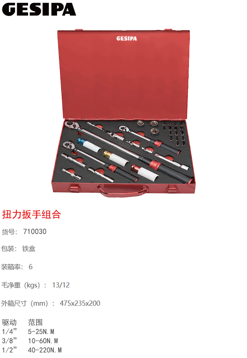 驱动:1/4"/范围:5~25N.m 驱动:3/8"/范围:10~60N.m 驱动:1/2"/范围:40~220N.m