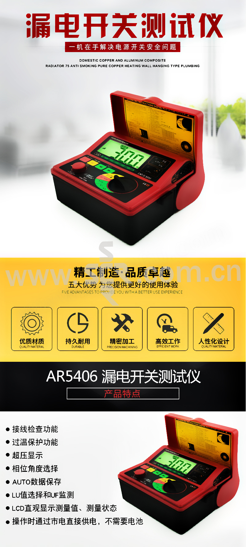 SMART SENSOR/希玛仪表 漏电开关测试仪 AR5406 1台