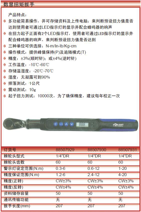 A12299 88507931 4-20N.m ±3%(顺时针);或±4%(逆时针) 207mm 60 1-20N.m 4-20N.m 50 4425.00