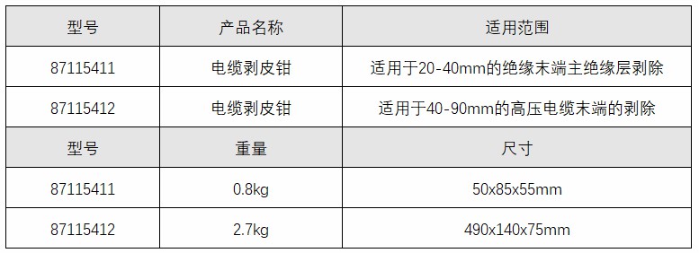 适用于40-90mm的高压电缆末端的剥除
