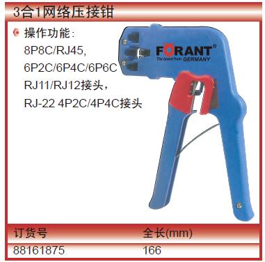 ·操作功能: 8P8C/RJ45, 6P2C/6P4C/6P6C RJ11/RJ12接头, RJ-224P2C/4P4C接头