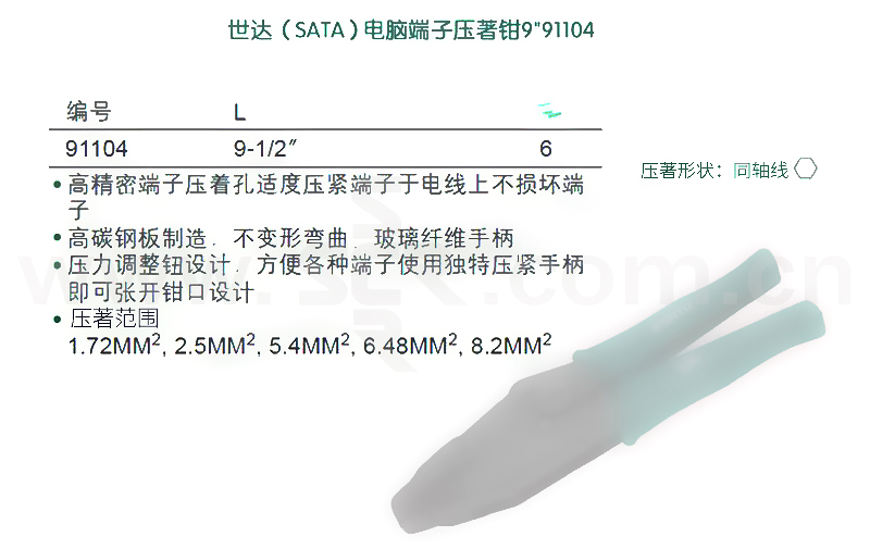 SATA/世达 强力电脑端子压着钳 SATA-91104 1.72/2.5/5.4/6.48/8.2mm2 9" 1把
