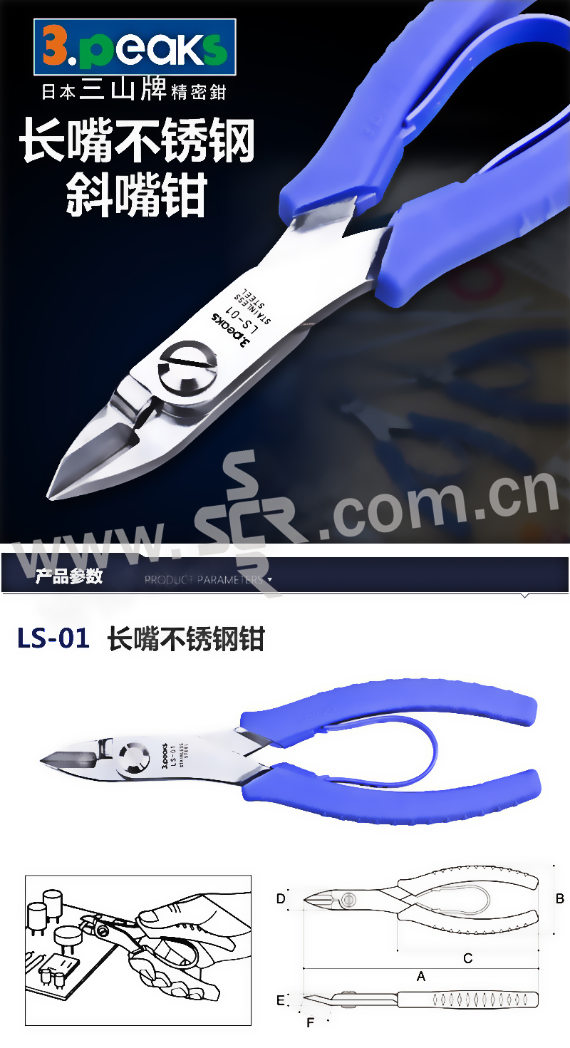 3PEAKS/三山 进口电子尖嘴钳(不锈钢) LS-03 165mm 1把