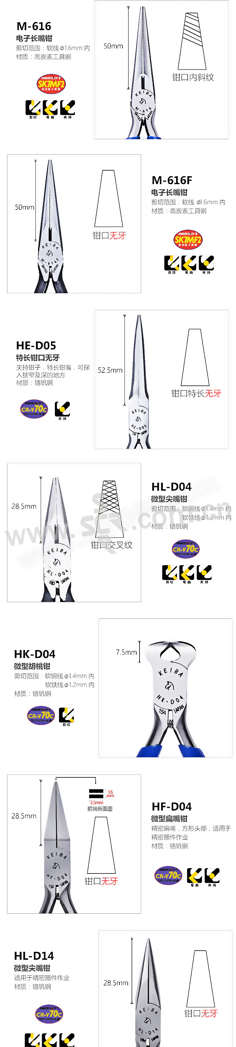 ·尖嘴钳的精密长嘴钳符合人体力学而设计,其坚韧及特别的颚身设计适用于各类行业和模型制作。