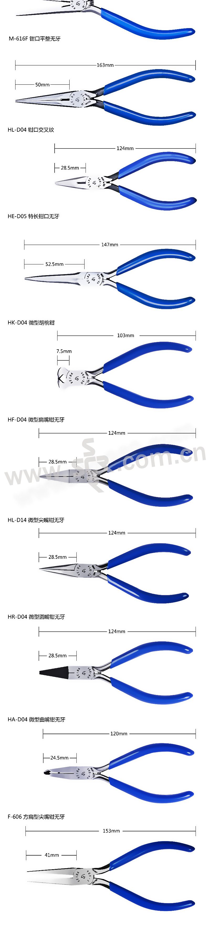 ·尖嘴钳的精密长嘴钳符合人体力学而设计,其坚韧及特别的颚身设计适用于各类行业和模型制作。