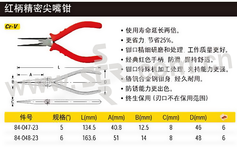 STANLEY/史丹利 红柄精密尖嘴钳 84-048-23 6" 1把