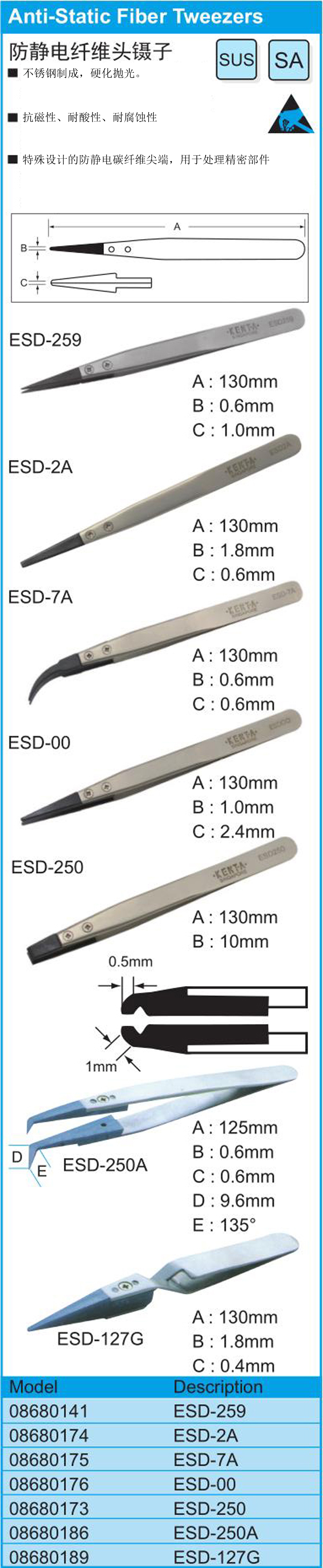 防静电纤维头镊子